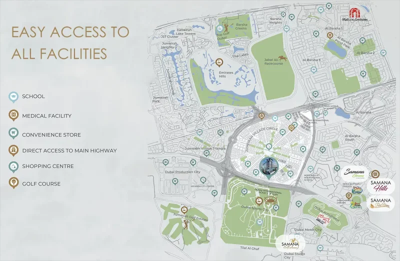 • Jumeirah Village Circle. This one is ideal for families with kids. It's rather affordable and has a robust infrastructure that includes a multitude of shops and schools.