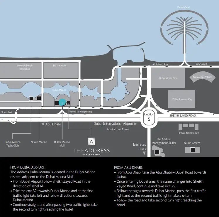 Overlooking the world's largest artificial marina and waterfront with upscale stores, renowned restaurants and trendy nightlife lounges, Address Dubai Marina is in the heart of New Dubai.