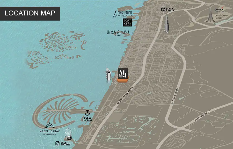 The development is close to the Dubai area, which offers a good and large supply of trendy and boutique shopping malls. You can lead a beautiful pleasant lifestyle while enjoying the beautiful view of the beach surrounded by hotels and cafes.