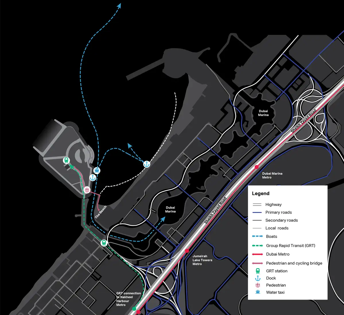 Bluewaters is close to Dubai Marina and a short drive from Abu Dhabi. The project will provide the benefits of rapid transit with a driverless car frame connecting the island to the beachfront at Jumeirah Beach Residence. Residents can enjoy a prime appealing key location from their homes just a short drive away. Nearby locations such as Burj Khalifa is 18.2 km from Bluewaters apartment, Dubai Twin Towers is just 25 km away and Al Maktoum International Airport is just 20 minutes from your home.