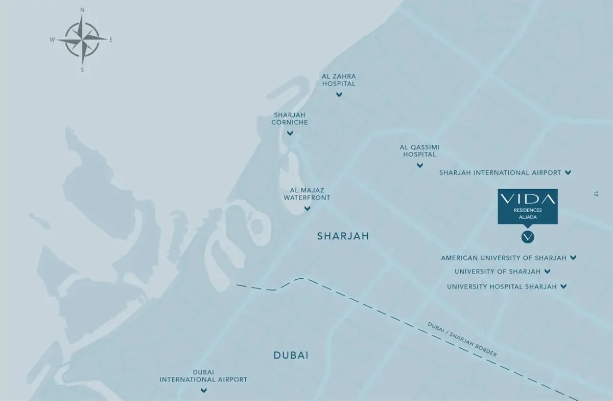 Ideally located in the heart of Sharjah's fast-growing neighborhood, Vida Residences features 168 signature apartments with minimalist and contemporary design. There's room for relaxation and rest: interiors with natural light, great attention to detail, and exquisite finishes.